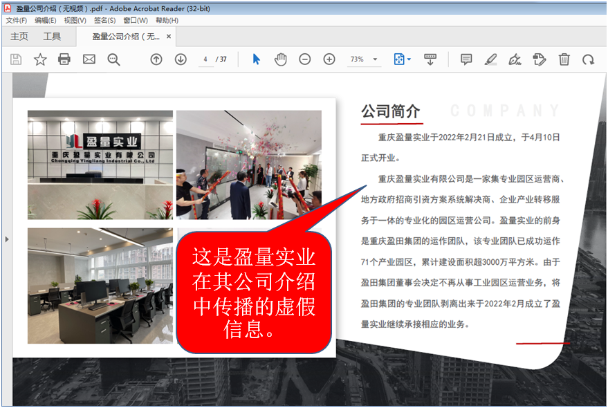 近期,我司接到部分政府園區(qū)和企業(yè)客戶反映,個(gè)別離職員工成立的重慶盈量實(shí)業(yè)有限公司(以下簡稱盈量實(shí)業(yè)),糾集極少數(shù)人,傳播虛假信息,四處傳播說“盈量實(shí)業(yè)的前身是重慶盈田集團(tuán)的運(yùn)作團(tuán)隊(duì),該專業(yè)團(tuán)隊(duì)已成功運(yùn)作71個(gè)產(chǎn)業(yè)園區(qū),累計(jì)建設(shè)面積超3000萬平方米。由于盈田集團(tuán)董事會(huì)決定不再從事工業(yè)園區(qū)運(yùn)營業(yè)務(wù),將盈田集團(tuán)的專業(yè)團(tuán)隊(duì)剝離出來于2022年2月成立了盈量實(shí)業(yè)繼續(xù)承接相應(yīng)的業(yè)務(wù)。”對(duì)此,我司對(duì)這種詆毀盈田集團(tuán),利用偽裝手段,冒名盈田品牌,打著盈田運(yùn)營團(tuán)隊(duì)的旗號(hào)招攬業(yè)務(wù),損害我司利益的行為,表示嚴(yán)厲譴責(zé),并保留追究法律責(zé)任的權(quán)利。同時(shí),我司發(fā)表嚴(yán)正聲明如下: