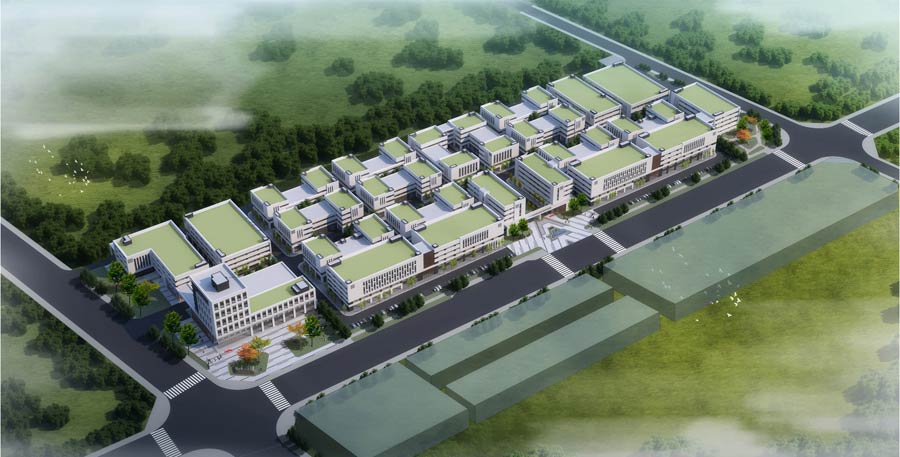 園區(qū)位于墊江縣縣城,占地總面積110797方,總建筑面積19.6萬方,容積率1.696,綠化率13.04%,規(guī)劃建設1棟辦公樓和21棟廠房。分兩期開發(fā)建設,一期預計2016年10月竣工。